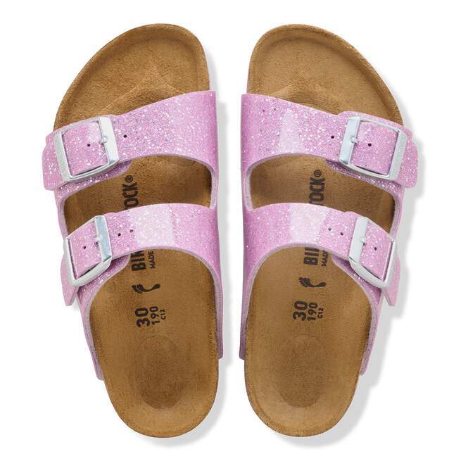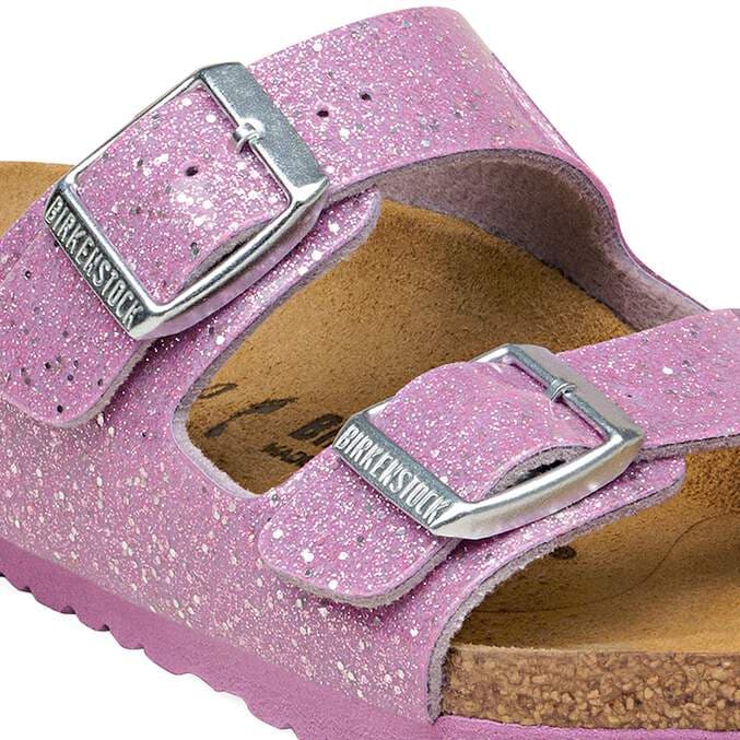 The legendary two-strap design from BIRKENSTOCK - the Arizona for kids. Iconic style complemented with the signature comfort of the BIRKENSTOCK footbed. Shown in "cosmic sparkle" Birko-Flor®.