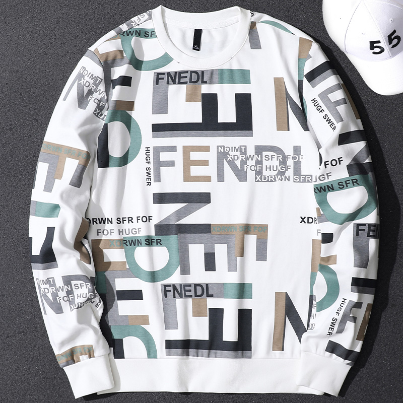 Handsome Spring and Autumn English Printed Sweater Men's Trendy Brand Korean Style Casual Personalized Pullover Bottoming Shirt Long Sleeve Top for Men