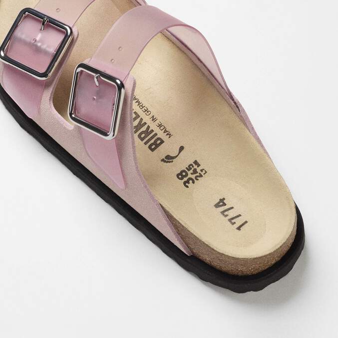 The iconic Arizona silhouette has remained unchanged since its launch in 1973. The latest reimagining is effortlessly updated with a semi-transparent colored PVC and premium Cazador leather on the buckle part. The new 1774 collection encapsulates a nostalgic vision of an idealized, never-ending summer.