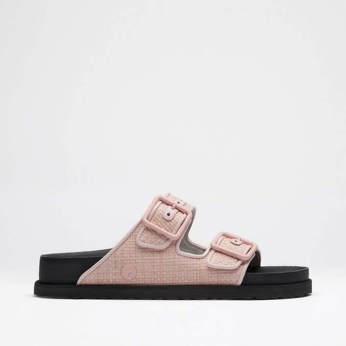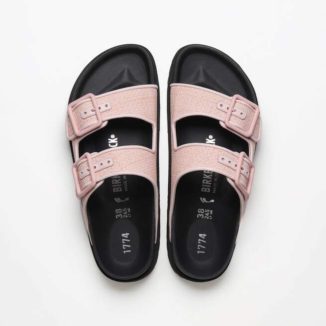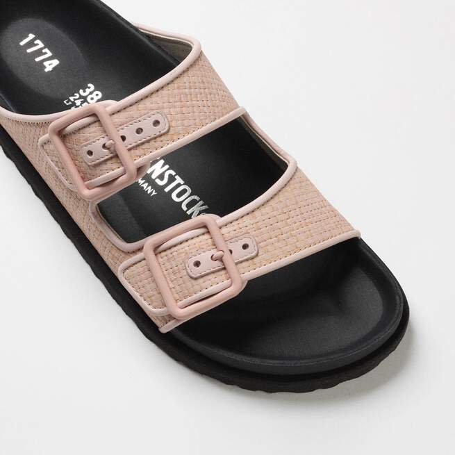 The Arizona Raffia Luxe features the signature silhouette with a raffia finish for its upper, executed with tonal leather piping. Designed with matching colored lining, the sandal is set on a cork-latex footbed, synonymous with classic BIRKENSTOCK function and utility thanks to its arch support and ergonomic design.