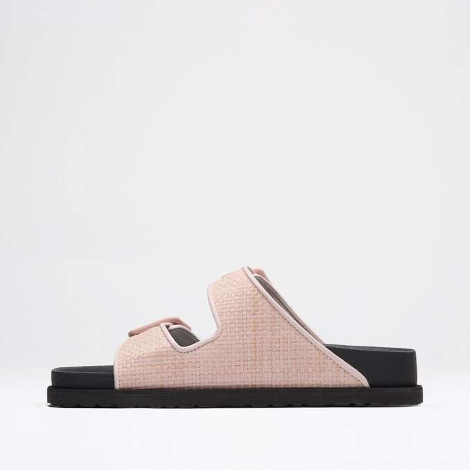 - Upper: Raffia, tonal leather piping