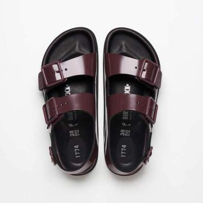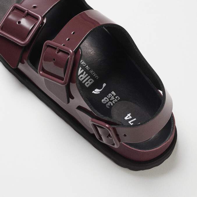 With its eye for refined materials and detail, this new 1774 Collection celebrates the iconic Milano style by creating a design with a luxurious high-shine finish and a smooth patent leather upper. The famous BIRKENSTOCK footbed is wrapped in premium Nappa leather which embodies the feel of luxury and craftmanship.