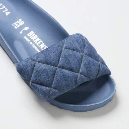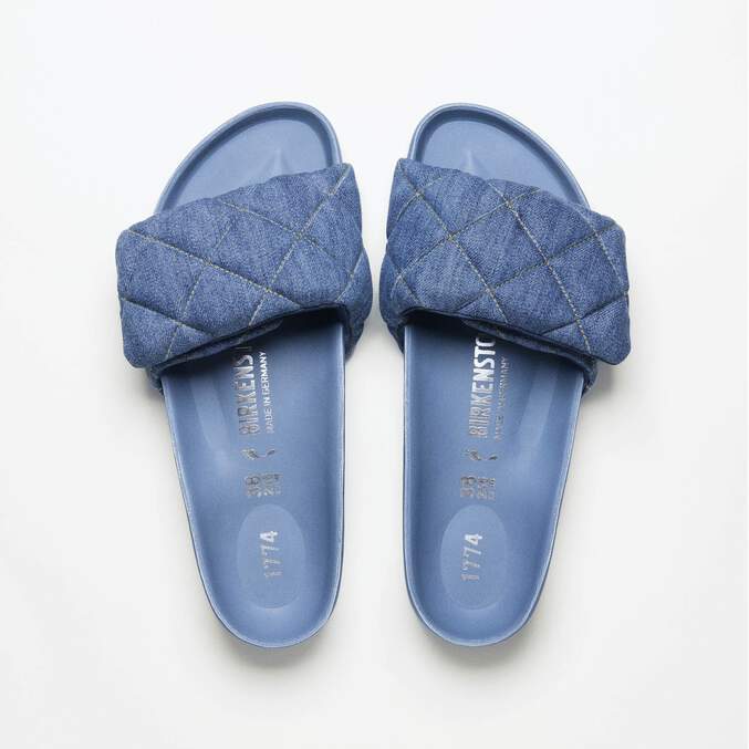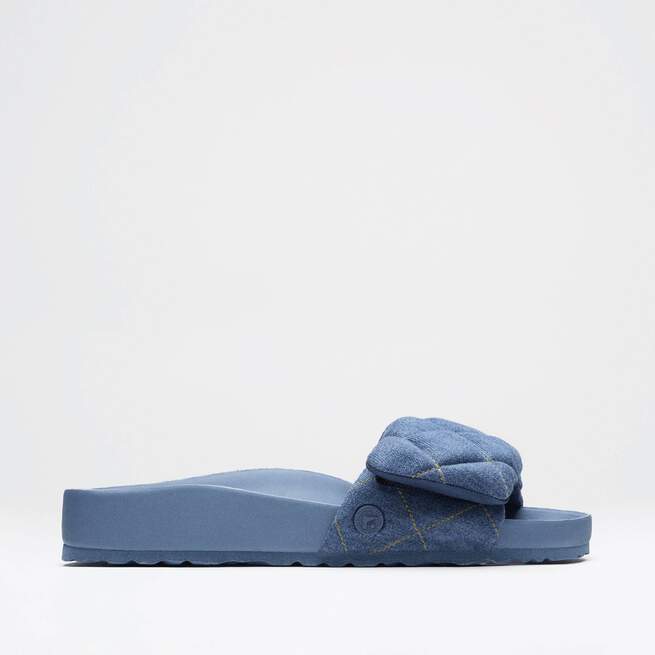 Sculpted from soft padded stone-washed denim with contrast quilting, the Sylt is a stylish and proportional play on German craftsmanship. Available in two colors with a single adjustable fastening strap and our iconic footbed wrapped in premium Piumato leather.