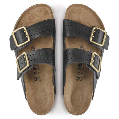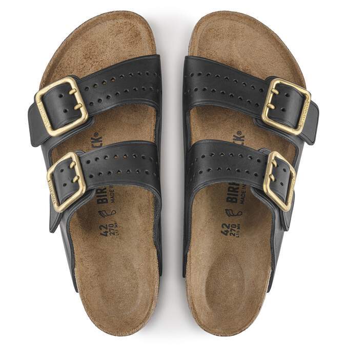 The legendary two-strap design from BIRKENSTOCK - the Arizona. Iconic style with the signature comfort of the BIRKENSTOCK footbed. This modern version of our classic Arizona features a double prong brass tonal buckle and a high traction rubber outsole. The cushioning midsole made from EVA promotes stability and comfort. Made of premium leather with edge embossing
