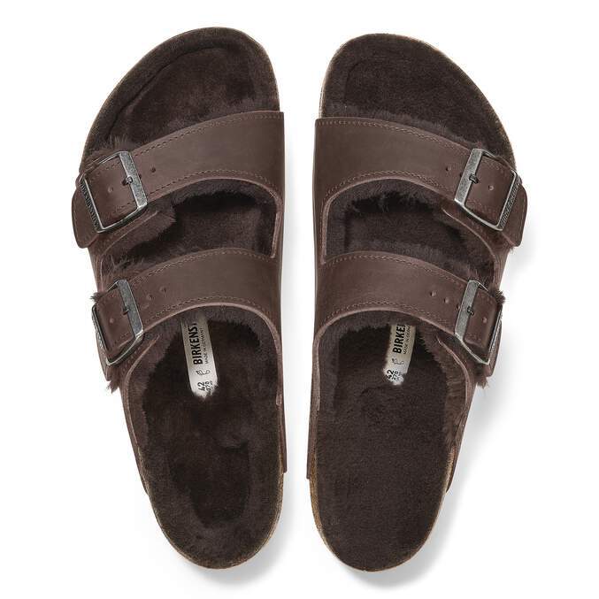 The BIRKENSTOCK Arizona is a genuine classic that has been delighting both men and women for decades. This simple sandal with two straps stands for timeless design and has long held cult status thanks to its comfort factor. Here, the classic model comes in a particularly cozy version with shearling lining and straps lined with shearling. The perfect shoe for cozy winter evenings by an open fire! The upper is made from extra thick, oiled nubuck leather and features an open-selvage finish.