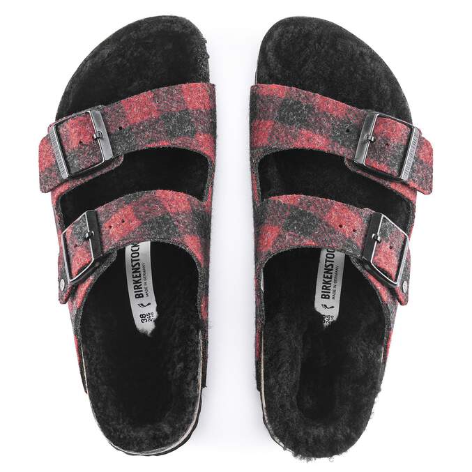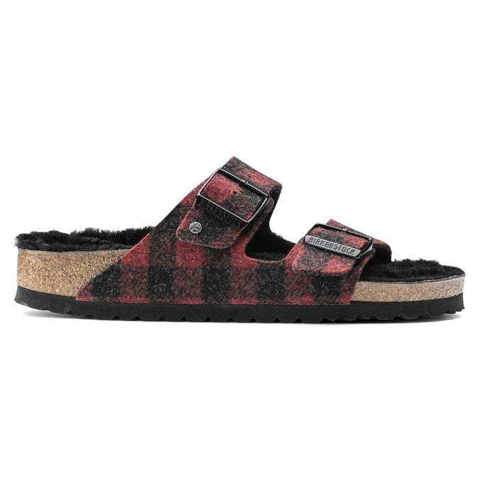 The popular BIRKENSTOCK Arizona is a classic model with two adjustable straps. Featured in a cozy wool plaid with bright genuine shearling lining on the anatomically formed cork-latex footbed. These sandals are perfect for chilly, winter evenings.The upper is made from soft wool.