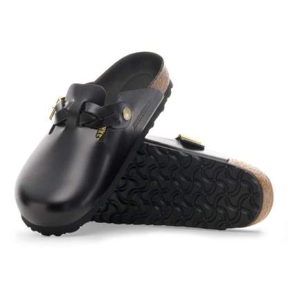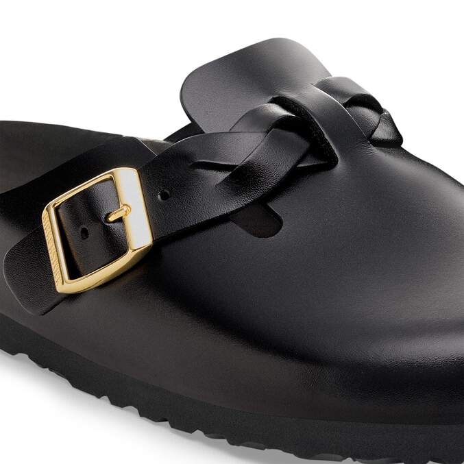 The BIRKENSTOCK Boston is a veritable classic that can easily be worn all year round. It has a legendary status thanks to its sophisticated, individually adjustable design. Here, the model comes with a special detail: the straps have a braided pattern, making them the perfect match for fashionable boho styles. The semi-exquisite footbed is fully lined with soft piumato leather, making it exceptionally comfortable. The upper is made from especially fine and high-quality Amalfi leather.