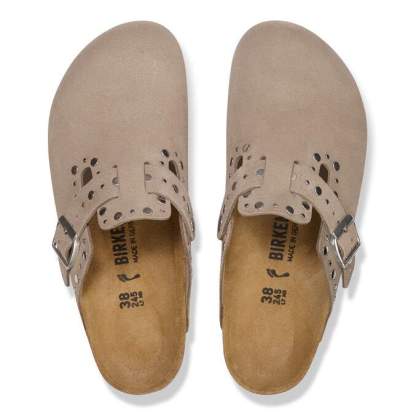 The BIRKENSTOCK Boston is a veritable classic that can easily be worn all year round. It has a legendary status thanks to its sophisticated, individually adjustable design. This version features precisely positioned rivets with no back which are made to sit firmly in the leather in an elaborate production process without going too deep, making them unnoticeable when the shoe is worn. It’s quite an eye-catcher! The upper is made from especially soft suede which hugs the foot like a second skin.