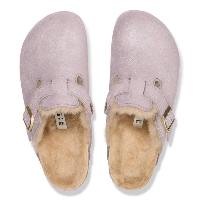 The Boston clog made cozy for the colder months. Shimmery suede softly catches the light, bringing the feeling to the inside. The style is fully lined in genuine shearling, right down to the original contoured footbed. A soft, supportive landing every time.