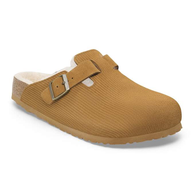 So classic and consistently comfortable, the Boston clog has become a coveted, year-round favorite. Embossed suede takes on the style of corduroy for a heritage quality that's both soft and durable. Genuine teddy shearling lines this version to keep it in rotation through the colder months, grounded in a contoured footbed for everyday support.