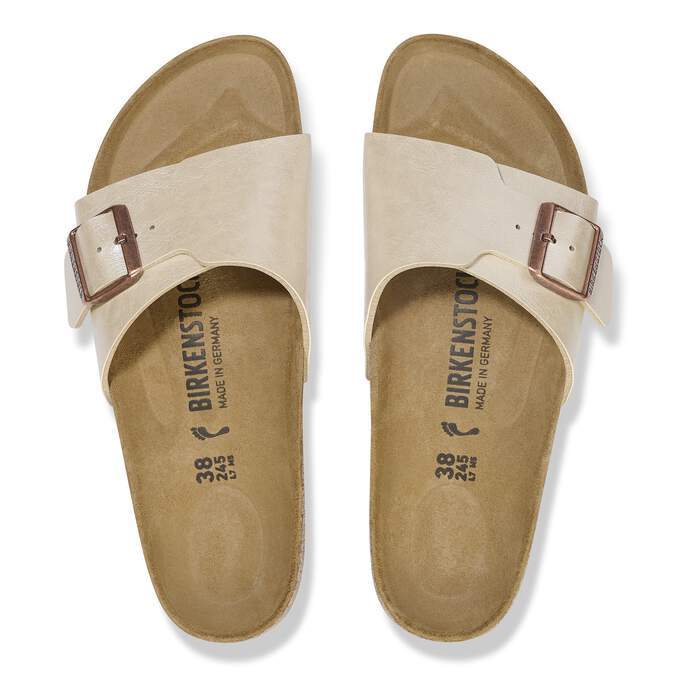 Iconic BIRKENSTOCK® design reimagined for today. The Catalina sandal expands on our single-strap look with the perfect coverage. Shimmery Birko-Flor® brings subtle dimension to the strappy style. With an original contoured footbed for support, this one is ready to chase the sun when you are.