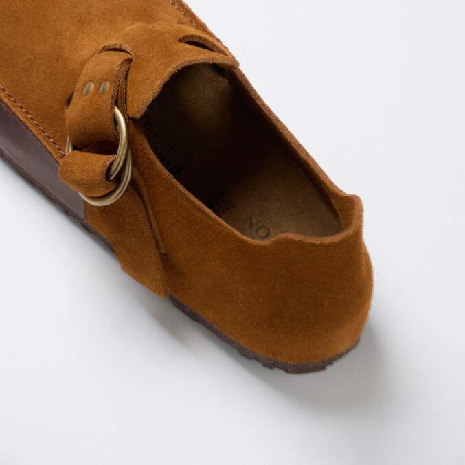 Filson and BIRKENSTOCK come together to introduce a style that carries the legacy of supreme quality, storied craftmanship and timeless design of both brands. The London Methow is a suede Moccasin silhouette constructed of unlined, malleable leathers and with an adjustable buckled strap that are designed for ultimate comfort.
