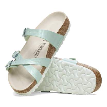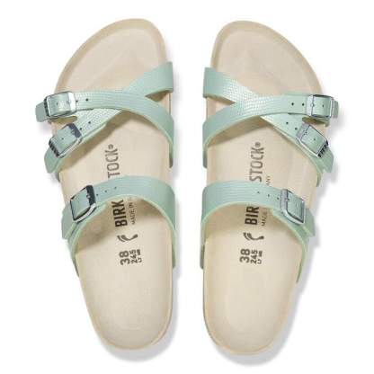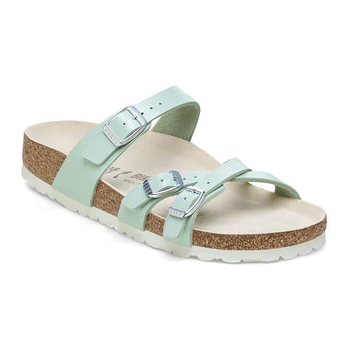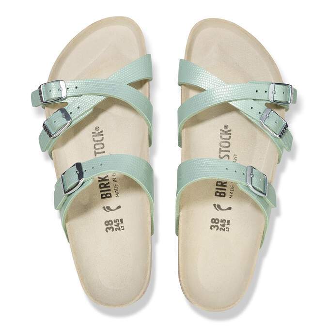 The Franca sandal, shined up to catch the light just right. Embossed, shimmery Birko-Flor® brings subtle dimension to the strappy style. With an original contoured footbed for support, this one is ready to chase the sun when you are.
