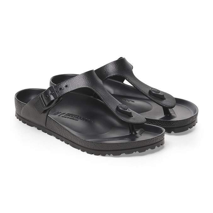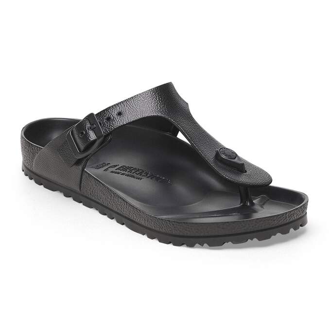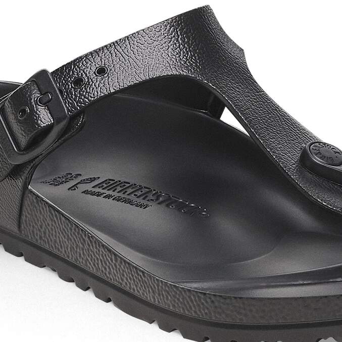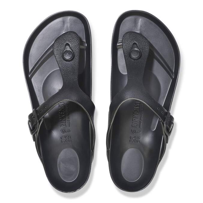 The BIRKENSTOCK Gizeh is our classic thong sandal. Modeled on the cork original, this sandal is made from ultra lightweight and highly flexible EVA. These colorful sandals are shock-absorbent, waterproof, and skin-friendly. Wear them at the beach, in the garden, or in wellness and spa areas. It's the perfect addition to your classic BIRKENSTOCK sandals.