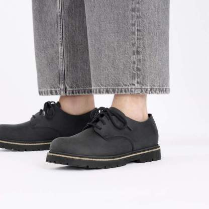 The Highwood Low by BIRKENSTOCK is a simple, elegant low shoe with laces that is immediately recognizable as a BIRKENSTOCK original thanks to the integrated cork element in the sole. The comfortable and light Deep Blue Footbed makes the shoe a perfect 24/7 all-rounder, especially on long and active days. Perfect for your next holiday, extensive walks, or city trips. The upper is made from extra thick, oiled nubuck leather with an open-selvage finish.