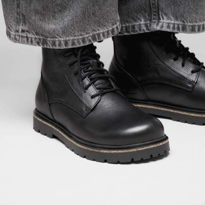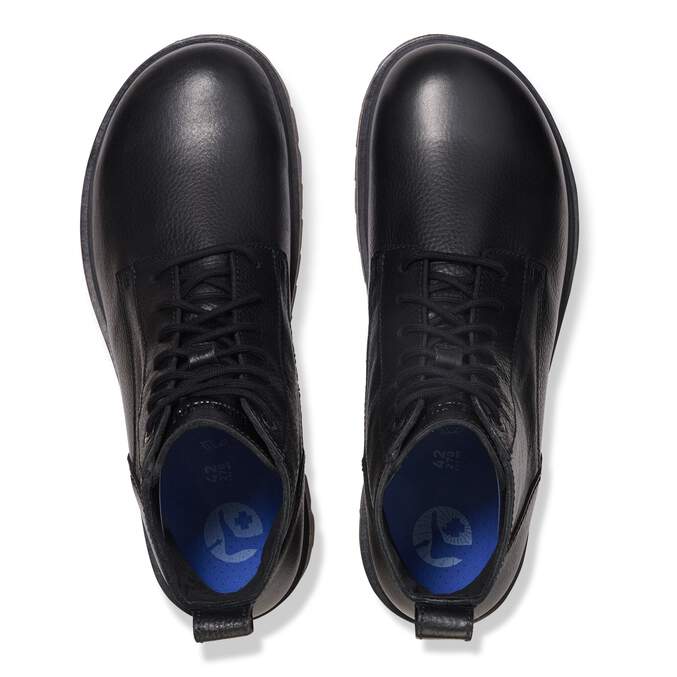 With the Highwood, BIRKENSTOCK presents an understated, mid-calf Chelsea boot that’s instantly recognizable as an authentic BIRKENSTOCK original thanks to the cork elements in the sole. Thanks to the lacing, it offers maximum support and adjustability. The comfortable and light Deep Blue Footbed makes the shoe a perfect 24/7 all-rounder, especially on long and active days. Perfect for your next holiday, extensive walks, or city trips. This version features a high-quality rubber outsole with a stud pattern for excellent traction. Biomechanically positioned elements promote a natural movement and ensure maximum comfort when walking. The upper is made from soft, grained natural leather.