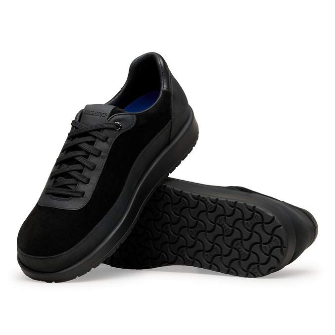 The BIRKENSTOCK Honnef City is a sporty sneaker characterized by a retro running shoe shape. Its simple, urban design makes it just the thing for a modern and sporty everyday look. The comfy and light Deep Blue Footbed makes the shoe a perfect 24/7 all-rounder, especially on long and active days. Perfect for your next holiday, extensive walks, or city trips. Thanks to its two components, the sole promotes a firm and comfy footing. It consists of a polyurethane midsole and an abrasion-resistant sole for a secure grip. The upper is made from high-quality , soft natural leather in combination with soft suede.