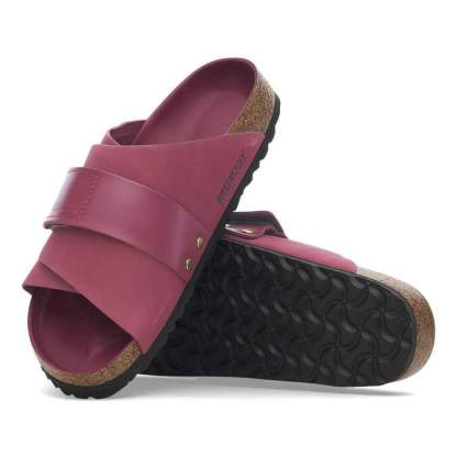 The Kyoto slide maximizes your comfort with its minimalist design. This season, a high shine hook-and-loop strap creates a patently perfect fit over smooth nubuck leather. It's all grounded in our contoured footbed, designed to shape to you with wear for the ultimate in support.