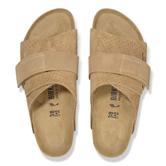 Minimalist design, maximum comfort. The Kyoto slide's double hook-and-loop closure creates the perfect fit from the inside out. Dotted suede gives your style new dimension with the material you love most. It's all grounded in our contoured footbed—we make it supportive, you make it yours.