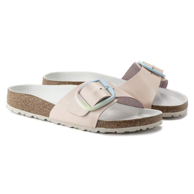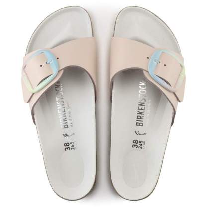 The original BIRKENSTOCK Sandal. A strap, a buckle, and a contoured cork footbed are masterfully combined to create the Madrid. This version features our popular Big Buckle with an ombre effect – a colorful pastel accent on this otherwise understated sandal. The color-coordinated semi-exquisite footbed is fully lined with soft piumato leather. The upper is made from high-quality aniline leather.