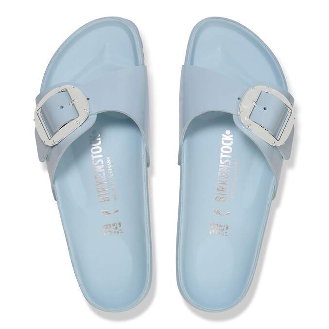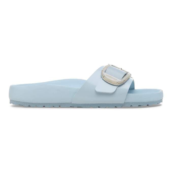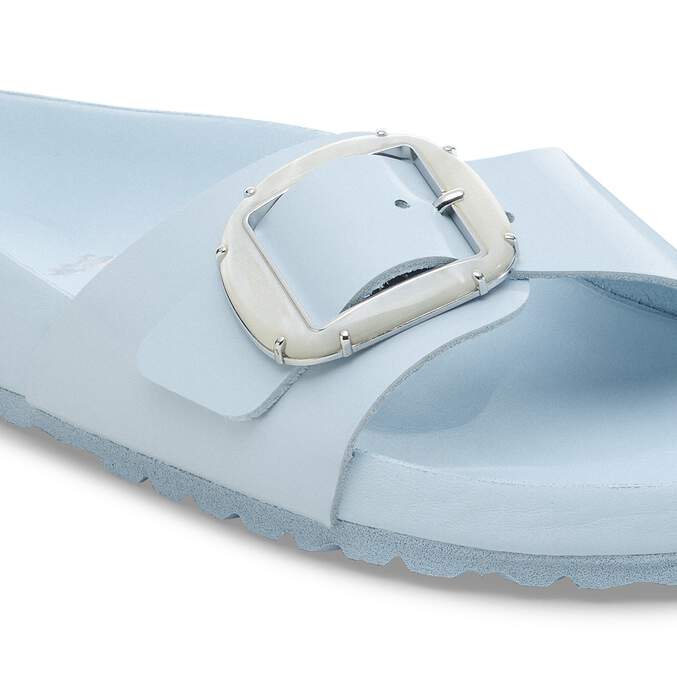 The BIRKENSTOCK Madrid is a genuine classic that delights the world of fashion with its minimalist design. The Pearl Big Buckle adds a feminine touch and ensures a luxurious look. With its shiny design and delicate metal bead details, it creates a stylish look and becomes a real eye-catcher. The color-coordinated details round off the shoe’s look of sophistication. The exquisite footbed is fully lined with soft piumato leather, making it exceptionally comfortable. The upper is made from high-quality natural leather with a shiny patent coating.