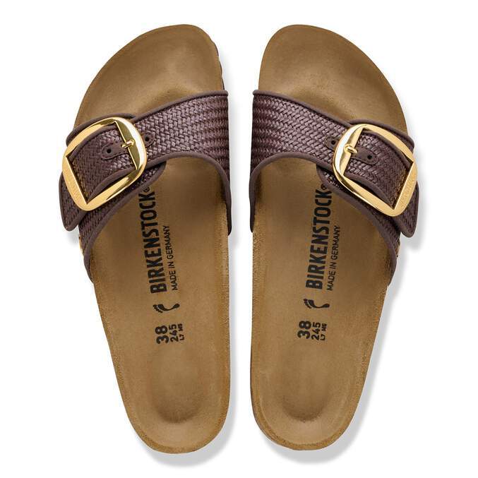 Raffia style, extra polish. The Madrid sandal reframes the woven look with tonal piping and an oversized, gleaming buckle. All on a contoured footbed that actually supports your style.