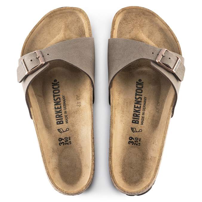 The BIRKENSTOCK Madrid is the oldest member of the family of models, making it a veritable classic. Launched as a “gymnastics sandal" half a century ago, this simple single-strap model has gone on to become a firm fashion favorite. The upper is made from the skin-friendly, hard-wearing synthetic material Birko-Flor® in a sophisticated nubuck look which boasts a texture and color that could almost be mistaken for real leather.