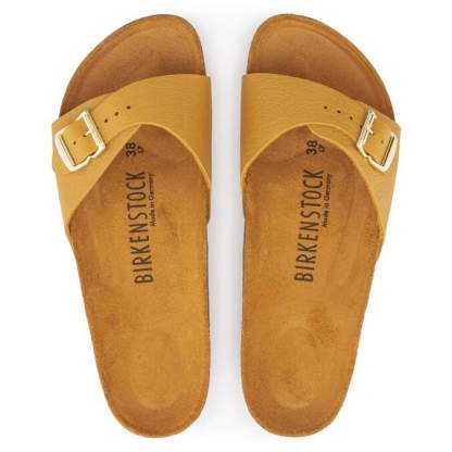 The style that started it all. Launched in 1963 as a "gymnastics sandal," the BIRKENSTOCK Madrid has since been embraced worldwide as an icon of style and comfort. For its 60th anniversary, we bring back the original design for a limited-edition anniversary collection, with buckles, footbed, outsole and packaging all inspired by the 1963 original. Every pair of the limited edition bears is own unique number and comes with the red BIRKENSTOCK seal and matching socks.