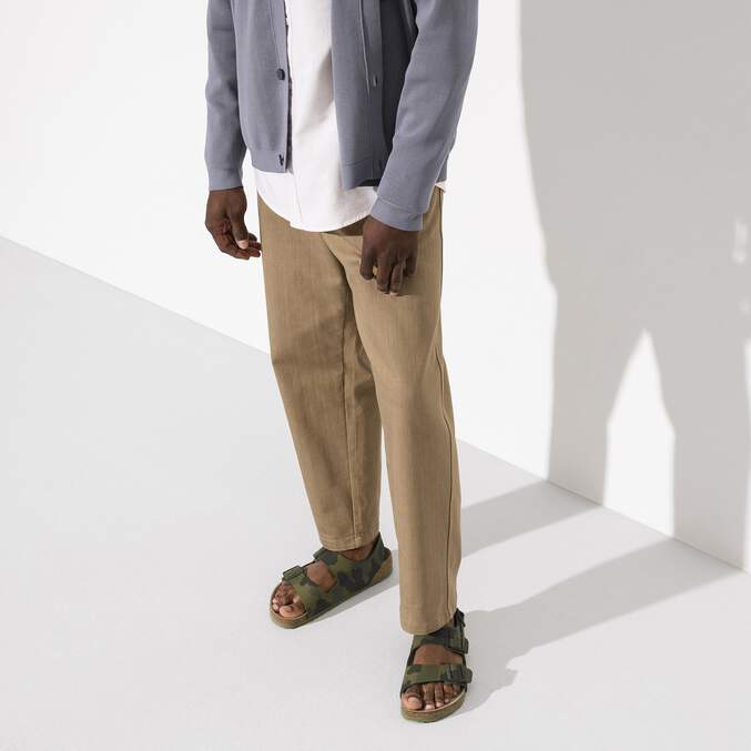 The BIRKENSTOCK Milano is a staple for style and comfort. The backstrap adds extra security and thanks to its additional foam layer, the soft footbed offers extra comfort all day long. Featured in a rugged camouflage print. Shown in Birko-Flor®.