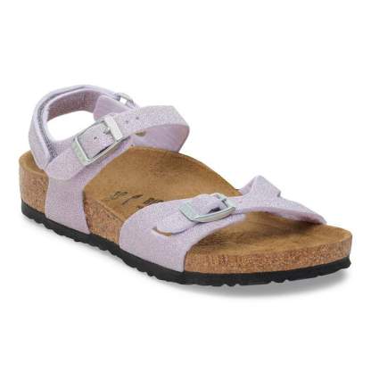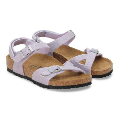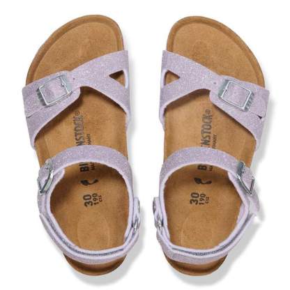 The BIRKENSTOCK Rio is a sporty, elegant sandal with an ankle strap that offers reliable and comfortable grip – including during boisterous play. This version is made from a synthetic material with a TPU coating that uses special nanotechnology to create a shiny glitter effect. This technology ensures that no glitter dust falls off.