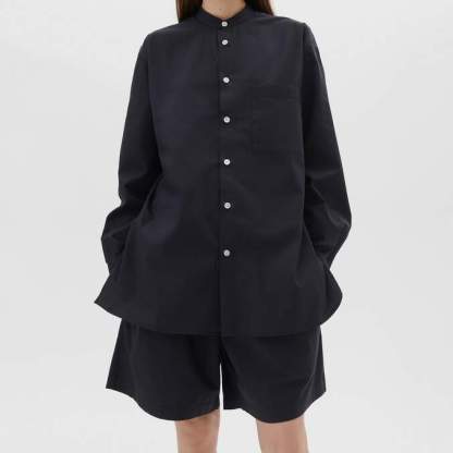 The Birkenstock x Tekla long-sleeved shirt is inspired by the oversized pieces worn for comfort and ease of movement. The fabric is tightly woven for durability and a smooth, even finish, then lightly stonewashed for a soft hand feel. The extra-long yarns used prevent pilling and guarantee a deep, pure colour even after years of use.