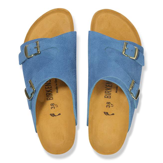 Back to celebrate its 60th anniversary. The Zürich slide returns with its long-loved design, plus limited-edition extras—the buckles, footbed stamp, outsole and packaging are all inspired by the 1964 original. Velvety soft suede, supportive contoured footbed. As comfortable as you remember it.