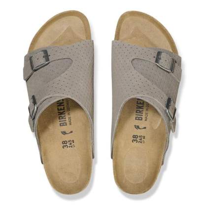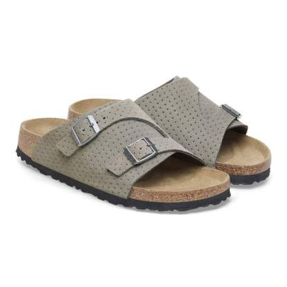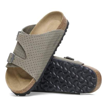 Back by popular demand. The BIRKENSTOCK Zürich returns with its long-loved design, featuring extra coverage and adjustability from two metal pin buckles. This season, dotted suede gives your style new dimension with the material you love most. It all rests on our contoured footbed, designed to shape to you for the ultimate in custom support.
