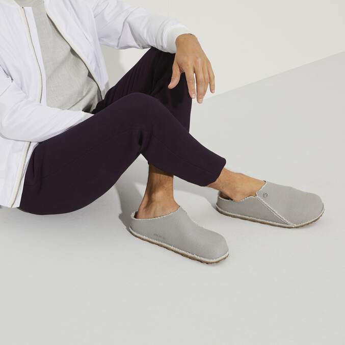 The Zermatt-- Birkenstock's first true slipper. Now featuring an extra grippy outsole in a unique rubber cork blend for added durability and traction. Perfect for casual adventures or just everyday. Unique heritage look upper with offset stitching and Birkenstock logo rivet. Contoured cork footbed is lined in soft suede.
